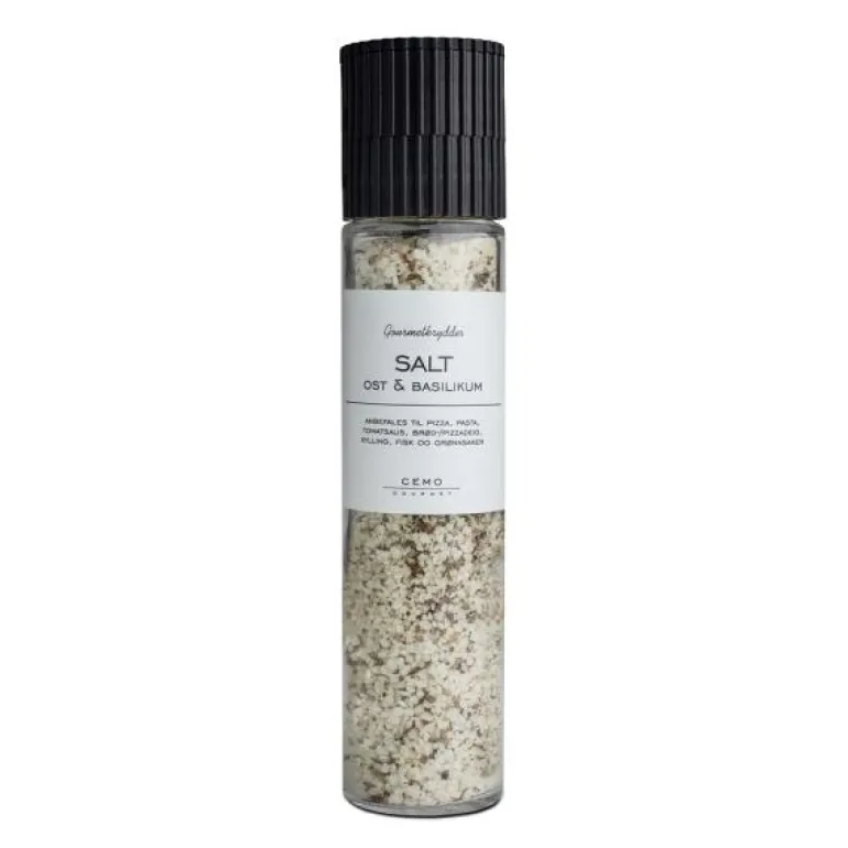 - Salt, ostepulver (ost (melk), emulgator E339), basilikum