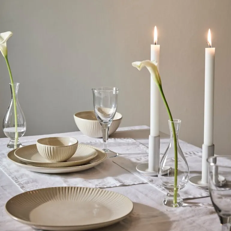 Granada skål fra Tell Me More har en diameter på 15,5 cm og er laget i håndlaget keramikk med en reaktiv glasur i kremfarget tone. Glasuren gir en halvblank overflate og utvikler sin endelige farge under brenning, noe som gjør hvert eksemplar unikt.