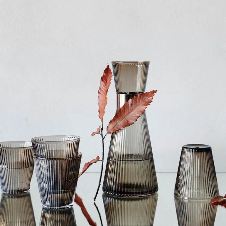 Grand Cru Nouveau er en moderne og stilfull utvikling av den ikoniske Grand Cru-karaffelen og matchende glass som finnes i mange hjem over hele verden. En stor del av Rosendahls DNA er ikke bare å skape tidløse klassikere, men også å fornye dem slik at de holder følge med tiden og verdenen vi lever i. Med Rosendahl Grand Cru Nouveau-serien har Rosendahl revitalisert en klassiker der formen og den grafiske designlinjen av riller og stålbånd rundt karaffelens hals er ? nesten ? den samme. Den store forskjellen er at både karaffelen og glassene i Grand Cru Nouveau-serien er laget i munnblåst glass med gjentagende riller på overflaten, noe som skaper et fantastisk lysspill. Funksjonaliteten er nøyaktig den samme som i de klassiske vannglassene og vannkaraflene ? selv om kanskje de mange rillene i Grand Cru Nouveau gir et enda bedre grep om glasset. Og fordi de er munnblåst har hvert glass små, unike variasjoner. Alt i alt er dette et elegant eksempel på funksjonelle, stablebare glass til en moderne livsstil. Glasset har fargen valnøtt, rommer 260 ml og kan vaskes i oppvaskmaskin på opptil 55 grader.