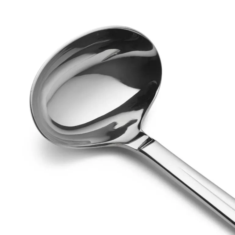 Denne sauseskjeen i rustfritt stål har en god vektfordeling og en passende størrelse til sauser.