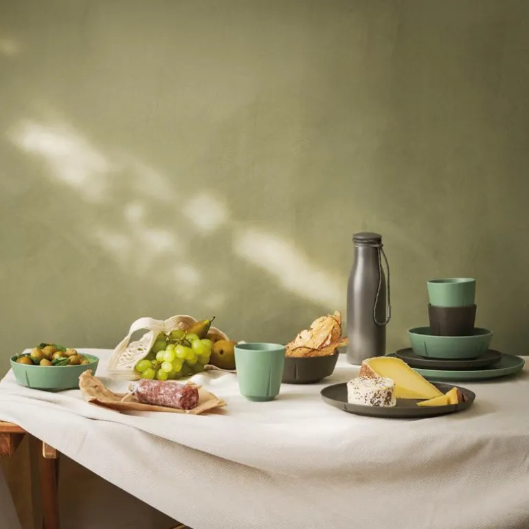 Kaffepause i solen eller piknik i parken? Uansett hvor du vil kose deg, blir opplevelsen bedre når maten serveres på et servise som er designet for å brukes utendørs. TAKE-serien er produsert i Danmark og er laget av biobasert plast, et CO2-redusert alternativ til vanlig plast. Utendørsserviset kan brukes om igjen og om igjen, og er 100 % resirkulerbart og støtter sirkularitet. Serien består av tallerkener i to størrelser, en bolle og et krus som kan brukes til både kalde og varme drikker.