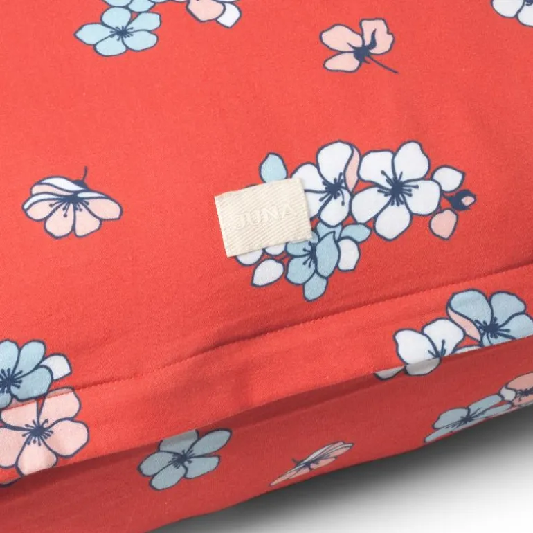 Grand Pleasantly kommer i grunnfargene blå og chili, og er inspirert av høsten. Materialet er 100 % økologisk bomullssateng som ikke bare er mykt og lekkert, men også er OEKO-TEX®-merket og GOTS-sertifisert. Både putevaret og dynetrekket har en praktisk glidelåslukking og fås i mange størrelser. Har du flere forskjellige sengesett fra JUNA, kan du mikse og matche forskjellige farger, mønstre – og blomsterstørrelser – på kryss og tvers og skape din helt egen stil på soverommet.