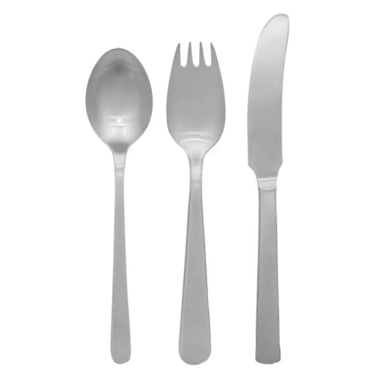 Barnebestikksett i tre deler, Grand Prix fra Kay Bojesen. Barn som vokser opp med gode manerer og gode materialer har egne barn som vokser opp omgitt av gode manerer og gode materialer. Så enkelt er det. Det store barnesettet fra Kay Bojesen består av en gaffel (15,5 cm), en barneskje (15 cm) og en barnekniv (18 cm).