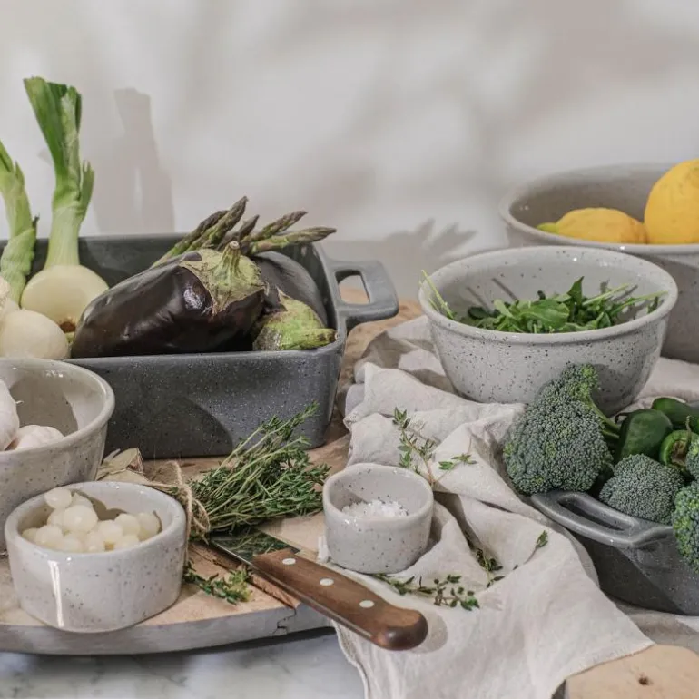 Nydelig servise i rustikt preg i glasert grå med spettete partikler . Produsert i Portugal som er kjent for sin høye ekspertise på kvalitet til det dekkede bordet. Produksjonsmetoden gir et unikt utseende og variasjon i formen som gir et røffere preg som skiller seg ut. Serviset tåler microbølgeovn og kan rengjøres i oppvaskmaskin. Vis omsorg for den unike kanten ved håndtering etter oppvaskmaskin.