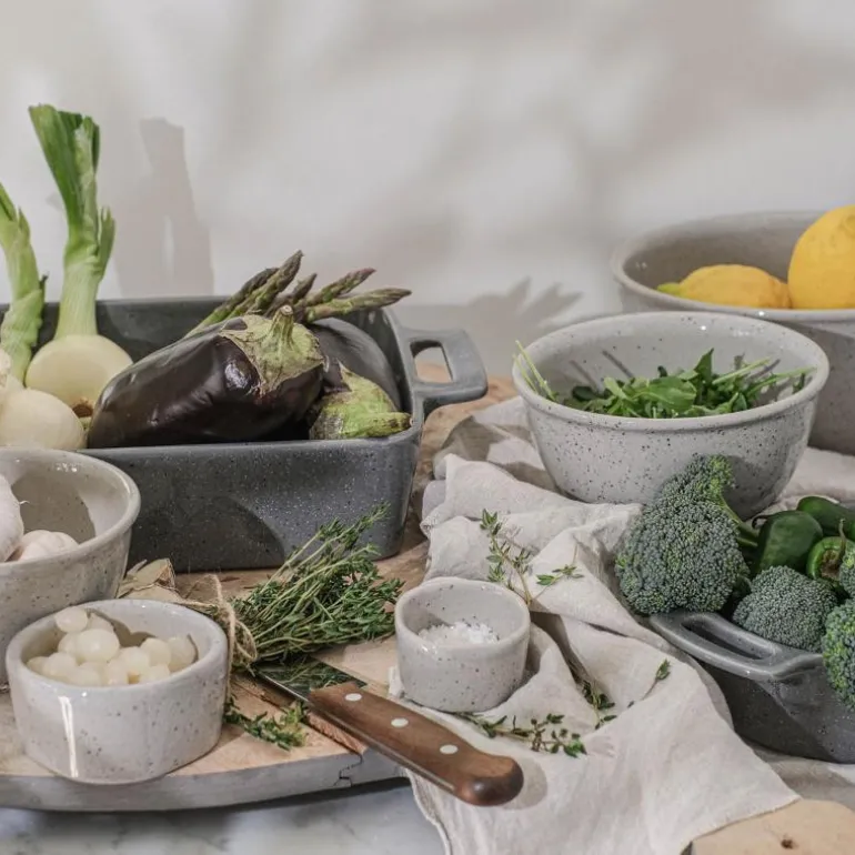 Allsidig skål til kokkelering, oppbevaring og servering. Nydelig servise i rustikt preg i glasert grå med spettete partikler. Produsert i Portugal som er kjent for sin høye ekspertise på kvalitet til det dekkede bordet. Tåler stekeovn, microbølgeovn og kan rengjøres i oppvaskmaskin.