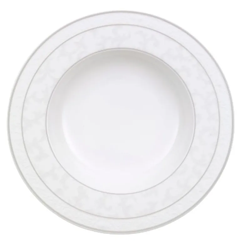 Villeroy & Boch bringer eleganse til bordet med Gray Pearl kolleksjonen. De klassiske fasongene og de subtile dekorasjonene i mild sølvgrå farge gir bordet eksklusivitet. Kvalitet fra Villeroy & Boch siden 1748..Den klassiske dype tallerkenen gir eleganse og eksklusivitet til festbordet. Benporselen. Tåler oppvaskmaskin. 24cm.Skjem bort deg selv og dine gjester med eleganse fra Villeroy & Boch.