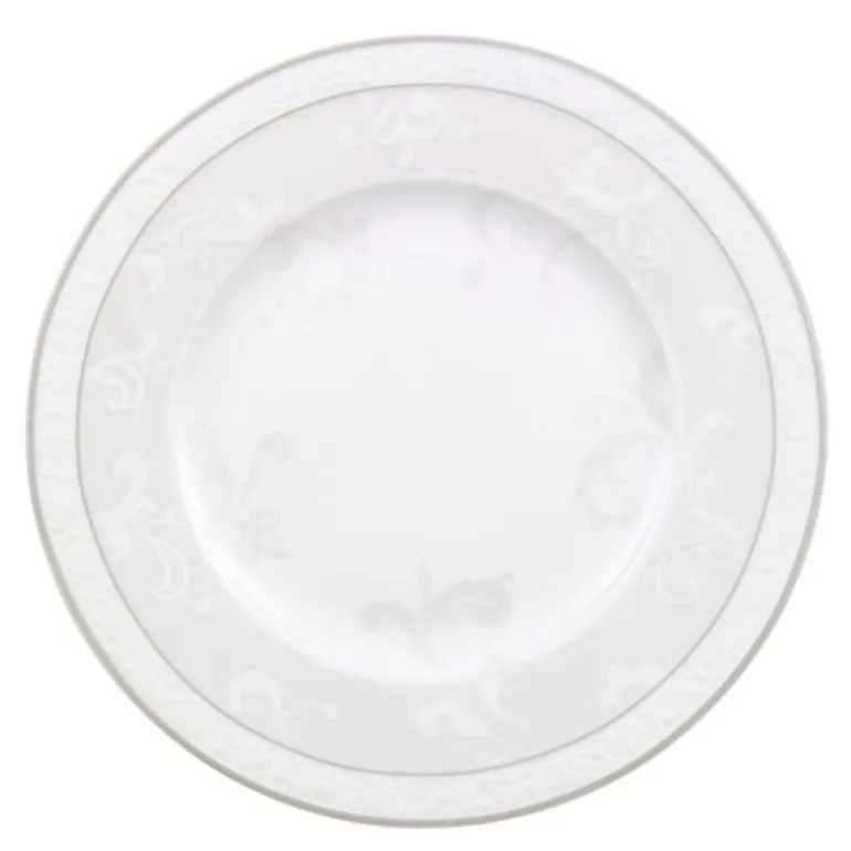 Villeroy & Boch bringer eleganse til bordet med Gray Pearl kolleksjonen. De klassiske fasongene og de subtile dekorasjonene i mild sølvgrå farge gir bordet eksklusivitet. Kvalitet fra Villeroy & Boch siden 1748. Den klassiske tallerkenen gir eleganse og eksklusivitet til festbordet. Benporselen. Tåler oppvaskmaskin. 22cm.Skjem bort deg selv og dine gjester med eleganse fra Villeroy & Boch.
