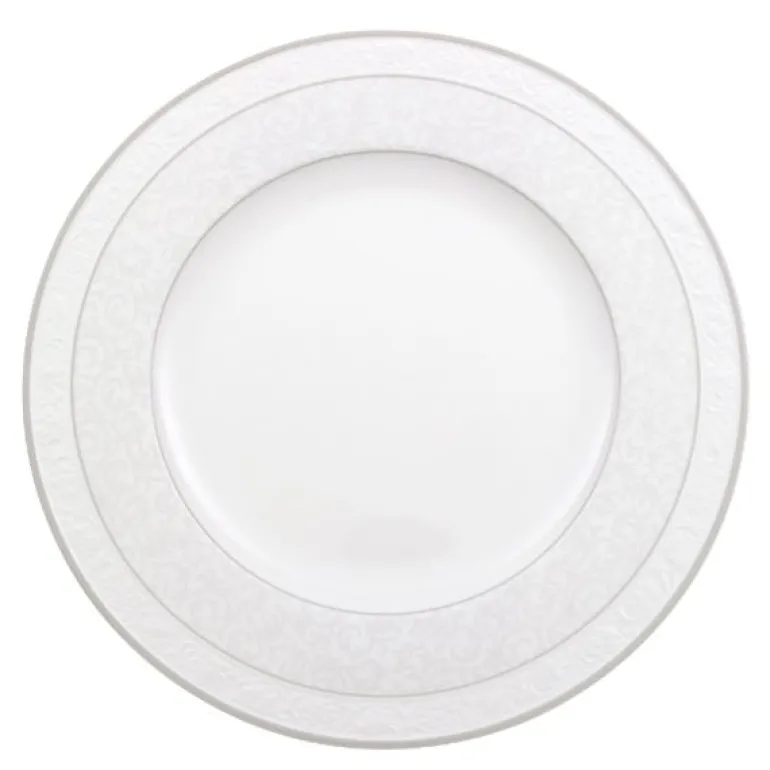 Villeroy & Boch bringer eleganse til bordet med Gray Pearl kolleksjonen. De klassiske fasongene og de subtile dekorasjonene i mild sølvgrå farge gir bordet eksklusivitet. Kvalitet fra Villeroy & Boch siden 1748. Den klassiske middagstallerkenen gir eleganse og eksklusivitet til festbordet. Benporselen. Tåler oppvaskmaskin. 27cm.Skjem bort deg selv og dine gjester med eleganse fra Villeroy & Boch.