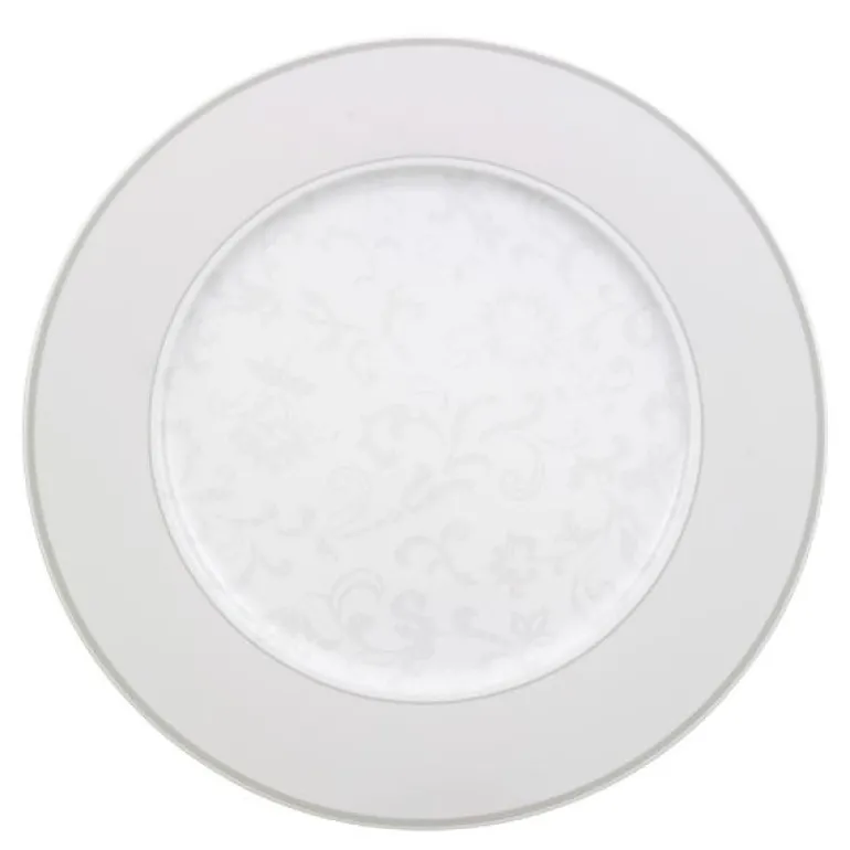 Villeroy & Boch bringer eleganse til bordet med Gray Pearl kolleksjonen. De klassiske fasongene og de subtile dekorasjonene i mild sølvgrå farge gir bordet eksklusivitet. Kvalitet fra Villeroy & Boch siden 1748. Den klassiske dekketallerkenen gir eleganse og eksklusivitet til festbordet. Benporselen. Tåler oppvaskmaskin. 30cm.Skjem bort deg selv og dine gjester med eleganse fra Villeroy & Boch.