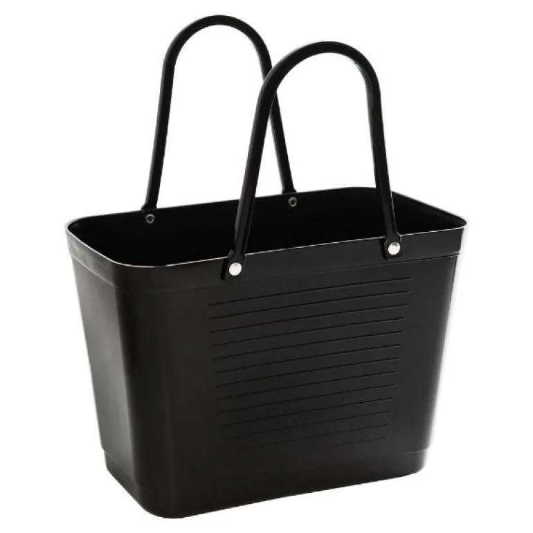Hinza Green Plastic-vesken på 7,5 liter kombinerer funksjonalitet med et tidløst 50-tallsdesign som skiller seg ut i hverdagen. Den er produsert i Sverige og laget av biobasert plast fra sukkerrør, noe som gir et robust og slitesterkt produkt som er både praktisk og stilfullt. Med sin allsidighet er denne vesken perfekt til oppbevaring av alt fra strikkeutstyr, leker og vedkubber til bruk i hagen, på sopp-plukking, på reiser eller under sosiale sammenkomster. Den rommer det du trenger, samtidig som den er lett å bære og enkel å rengjøre.
