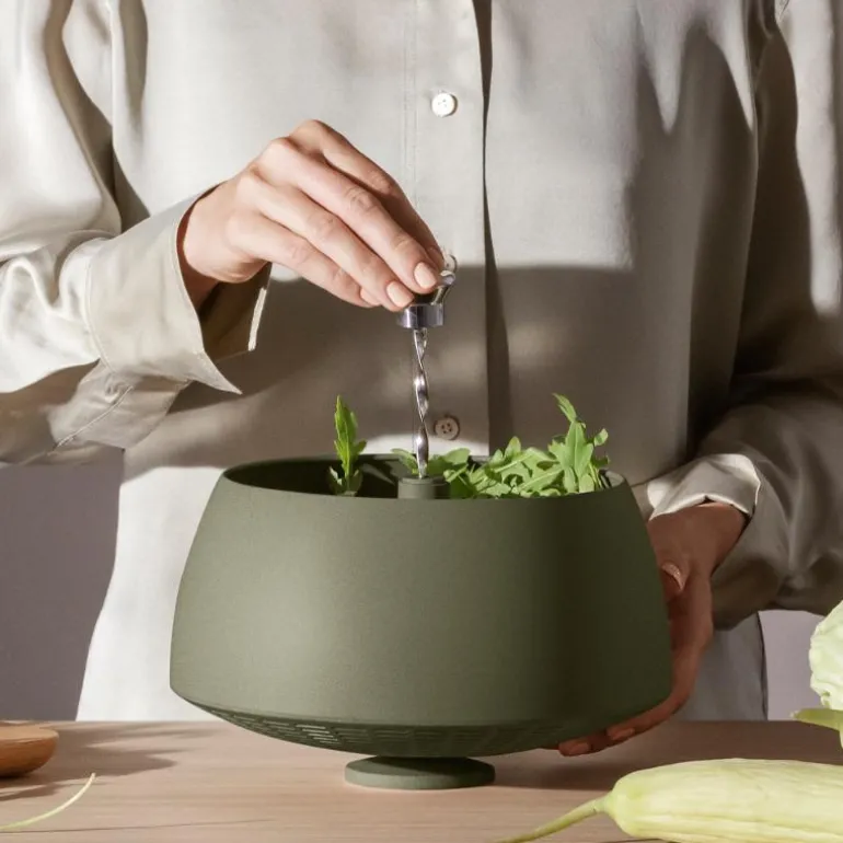 Eva Solo kombinerer funksjonalitet og design i denne praktiske salatslyngen, som også fungerer som et dørslag. Skyll salaten, trykk på skaftet et par ganger, og la vannet filtreres ut gjennom hullene i bunnen – helt uten søl.