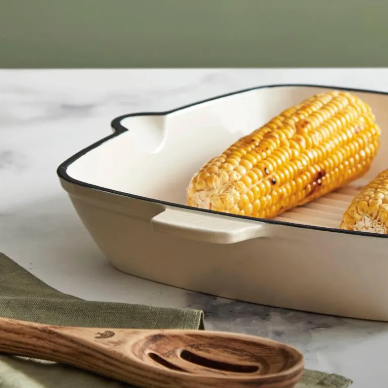 Barbary & Oak’s førsteklasses 26 cm støpejernsgrillpanne, designet for å levere optimal matlaging ved å effektivt beholde varmen. Den emaljerte overflaten gjør denne grillpannen enkel å rengjøre og motstår fastbrent mat, samtidig som den forhindrer absorbering av uønsket lukt eller smak.