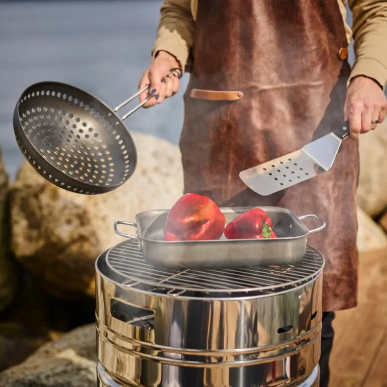 Ikke bruk grillpannen over hete kull eller i direkte kontakt med glør.