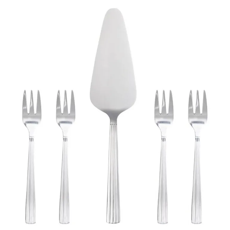 Perfekt for deg som ønsker et stilrent bestikksett til kakebordet. Laget av skinnende rustfritt stål er kakesettet både holdbart og enkelt å vedlikeholde. Det tåler oppvaskmaskin, noe som gjør det ideelt for både daglig bruk og festlige anledninger.