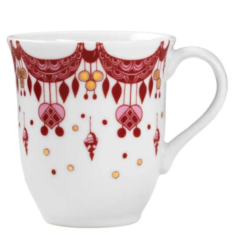 Tilfør litt ekstra magi til julestemningen med dette fine julekruset fra Bjørn Wiinblad. Kruset er dekorert med håndapplikerte motiver i julens klassiske røde farge og ekte gull. Julekruset rommer 35 cl og har en avrundet hank som gjør det lett å holde når kruset fylles med varm drikke. Sett julekruset på åpne hyller på kjøkkenet og la det tilføre litt ekstra julestemning i hjemmet. Julekruset vil garantert vekke glede hos både barn og voksne år etter år når julepynten hentes frem fra glemselen. Lag for eksempel et koselig, julepyntet kaffebord, med julekrus og skåler fra samme serie.