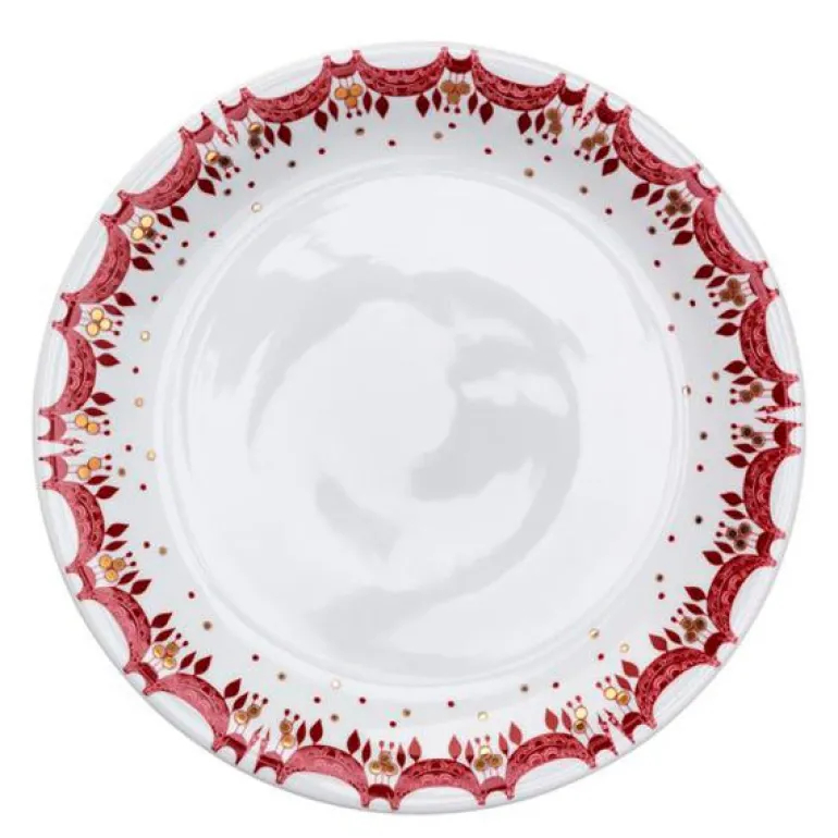 Velkommen til en hyggelig juledag med Guirlande tallerkenen 28 cm fra Bjørn Wiinblad. Denne vakre tallerkenen vil skape en perfekt atmosfære på ditt julbord og legge til en ekstra touch av festlighet til måltidet. Tallerkenen er dekorert med detaljerte guirlande-motiver, som har blitt hentet fra tidligere serier med julemønstre og motiver.