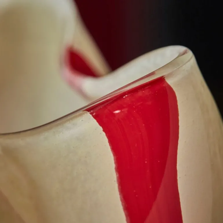 Gula telysestake fra House Doctor er en vakker håndlaget gjenstand i munnblåst glass som tilfører en livlig og fargerik atmosfære til hjemmet ditt. Den har en offwhite base med elegante røde striper som gir et unikt og iøynefallende preg. Denne telysholderen er også allsidig nok til å brukes som en liten vase, noe som gjør den til et praktisk og dekorativt tillegg til enhver innredning.