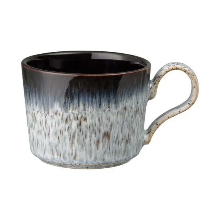 Denbys Halo fremstilles i England av lokal leire. Hver del av Halo er håndlaget med ferdigheter i keramikk som føres videre gjennom generasjoner. To glasurer kombineres for å skape dette unike og effektfulle serviset: Halo. Alle som eier en Denby vet hvor allsidig den er og hvor bra den føles. Hver del er designet for matlaging, servering og å nyte mat. Denbys servise er laget for riktig mat, ikke bare for syns skyld. Dens tilrettelegging for fingre, for spisepinner, for griller, for kjøkkenet ditt – Denby håndterer ting på de aller fleste kjøkkener, fra den minste koppen til den største gryten, og alle våre deler kan trygt brukes i mikrobølgeovn, oppvaskmaskin og fryser. Vi har over 5000 glasurer, alle hardere enn stål. Det har tatt oss 180 år å få glasurene våre så feilfrie som de er. Denby er smashing stuff! Vårt servise er virkelig mye vanskeligere å knekke enn andre serviser. Hver Denby-bit er unik. Den går gjennom 25 par hender før den til slutt havner i dine.