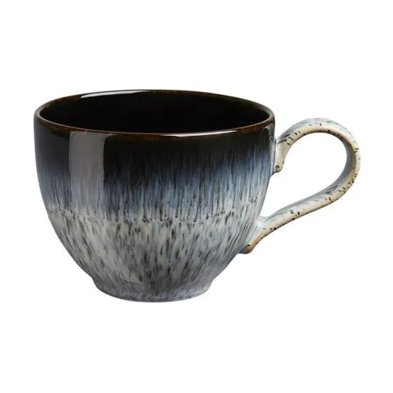 Denbys Halo fremstilles i England av lokal leire. Hver del av Halo er håndlaget med ferdigheter i keramikk som føres videre gjennom generasjoner. To glasurer kombineres for å skape dette unike og effektfulle serviset: Halo. Alle som eier en Denby vet hvor allsidig den er og hvor bra den føles. Hver del er designet for matlaging, servering og å nyte mat. Denbys servise er laget for riktig mat, ikke bare for syns skyld. Dens tilrettelegging for fingre, for spisepinner, for griller, for kjøkkenet ditt – Denby håndterer ting på de aller fleste kjøkkener, fra den minste koppen til den største gryten, og alle våre deler kan trygt brukes i mikrobølgeovn, oppvaskmaskin og fryser. Vi har over 5000 glasurer, alle hardere enn stål. Det har tatt oss 180 år å få glasurene våre så feilfrie som de er. Denby er smashing stuff! Vårt servise er virkelig mye vanskeligere å knekke enn andre serviser. Hver Denby-bit er unik. Den går gjennom 25 par hender før den til slutt havner i dine.