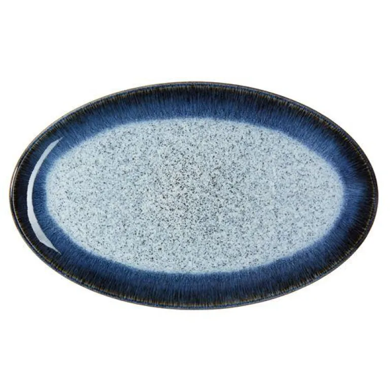 Denbys Halo fremstilles i England av lokal leire. Hver del av Halo er håndlaget med ferdigheter i keramikk som føres videre gjennom generasjoner. To glasurer kombineres for å skape dette unike og effektfulle serviset: Halo. Alle som eier en Denby vet hvor allsidig den er og hvor bra den føles. Hver del er designet for matlaging, servering og å nyte mat. Denbys servise er laget for riktig mat, ikke bare for syns skyld. Dens tilrettelegging for fingre, for spisepinner, for griller, for kjøkkenet ditt – Denby håndterer ting på de aller fleste kjøkkener, fra den minste koppen til den største gryten, og alle våre deler kan trygt brukes i mikrobølgeovn, oppvaskmaskin og fryser. Vi har over 5000 glasurer, alle hardere enn stål. Det har tatt oss 180 år å få glasurene våre så feilfrie som de er. Denby er smashing stuff! Vårt servise er virkelig mye vanskeligere å knekke enn andre serviser. Hver Denby-bit er unik. Den går gjennom 25 par hender før den til slutt havner i dine.