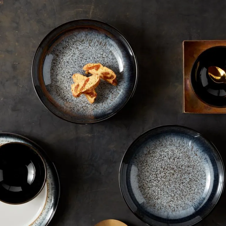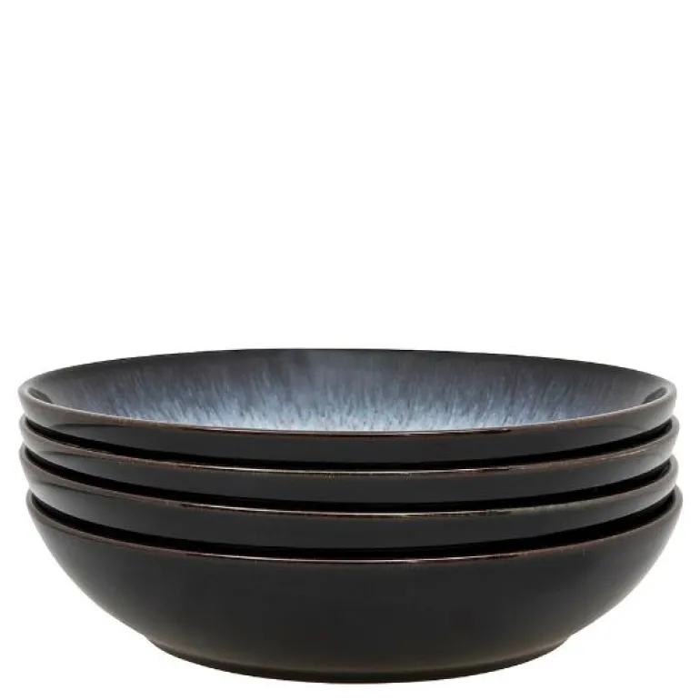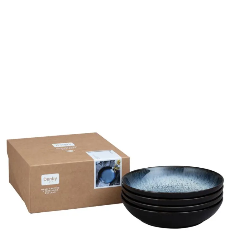 Denbys Halo fremstilles i England av lokal leire. Hver del av Halo er håndlaget med ferdigheter i keramikk som føres videre gjennom generasjoner. To glasurer kombineres for å skape dette unike og effektfulle serviset: Halo. Alle som eier en Denby vet hvor allsidig den er og hvor bra den føles. Hver del er designet for matlaging, servering og å nyte mat. Denbys servise er laget for riktig mat, ikke bare for syns skyld. Dens tilrettelegging for fingre, for spisepinner, for griller, for kjøkkenet ditt – Denby håndterer ting på de aller fleste kjøkkener, fra den minste koppen til den største gryten, og alle våre deler kan trygt brukes i mikrobølgeovn, oppvaskmaskin og fryser. Vi har over 5000 glasurer, alle hardere enn stål. Det har tatt oss 180 år å få glasurene våre så feilfrie som de er. Denby er smashing stuff! Vårt servise er virkelig mye vanskeligere å knekke enn andre serviser. Hver Denby-bit er unik. Den går gjennom 25 par hender før den til slutt havner i dine.
