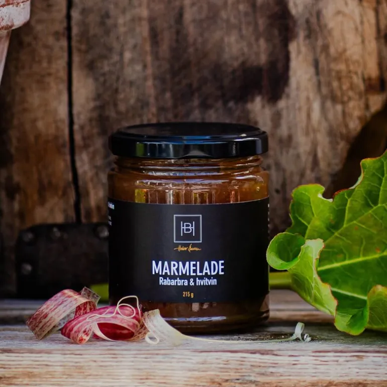 Amundsen Spesial Halvor Bakke rabarbra & hvitvin marmelade 215 g er en spennende smakskombinasjon der syrlig rabarbra balanseres av hvitvinens fruktige noter. Den er spesielt velegnet til brie, men kan også løfte ostefatet eller gi en ny vri til bakverk og desserter.