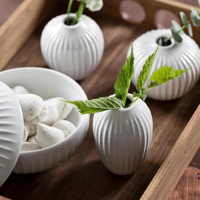 Denne Kähler-bonbonnieren er en del av den klassiske Hammershøi-serien, designet i samarbeid med den danske designeren Hans-Christian Bauer. Serien er kjennetegnet av sine fine, elegante riller, som gir keramikken et helt unikt uttrykk. Bruk den vakre bonbonnieren som dekorativ skål på bordet eller som oppbevaringskrukke på badet, i entreen eller på soverommet.