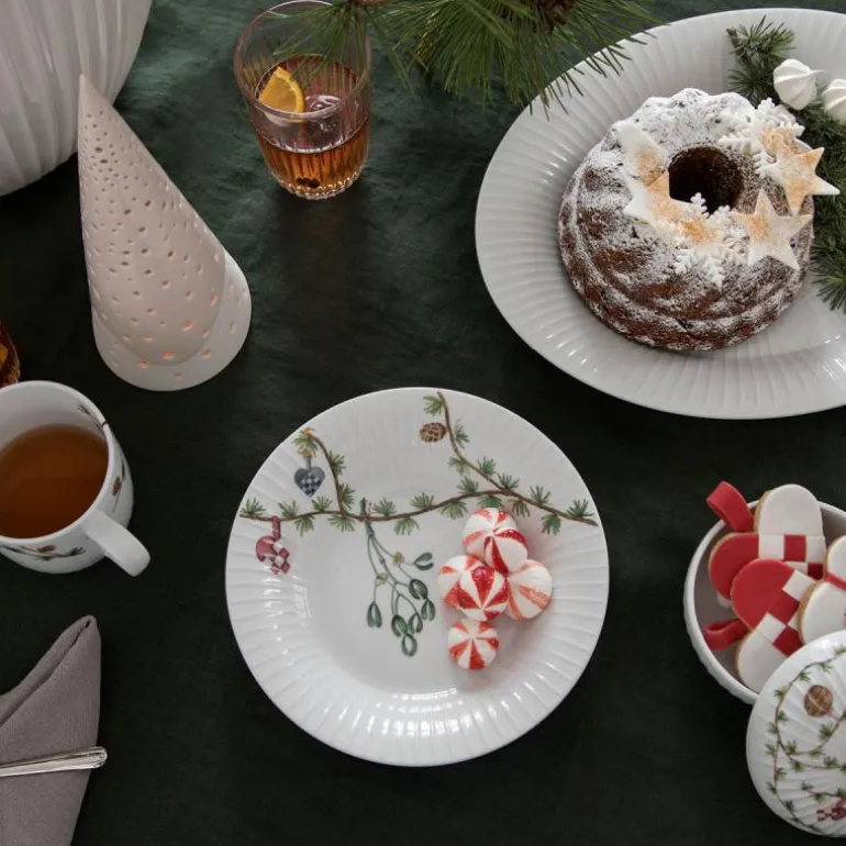 Dekk det vakreste julebordet med disse flotte tallerkenene fra Hammershøi Jul. Tallerkenene fullendes av de ikoniske Hammershøi-rillene og den yndige juleutsmykningen som smyger seg elegant over den hvite tallerkenen. De fine juledekorasjonene av trompeter og trommer som henger på en lerkegren, skaper en overraskende julevri. Skap en flott julemåned i selskap med dette inntagende Hammershøi-juleserviset. Vakkert design forent med funksjonell eleganse. Serviset kan vaskes i oppvaksmaskin.