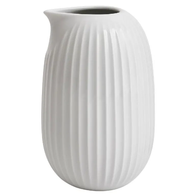 Denne elegante Hammershøi-melkemuggen i hvit farge er uunnværlig på det veldekkede kaffebord. Bruk den lille muggen sammen med koppene, krusene, den flotte kopp med underkopp eller den fine bonbonnieren i serien. Muggen er laget i glasert keramikk og rommer 50 cl.