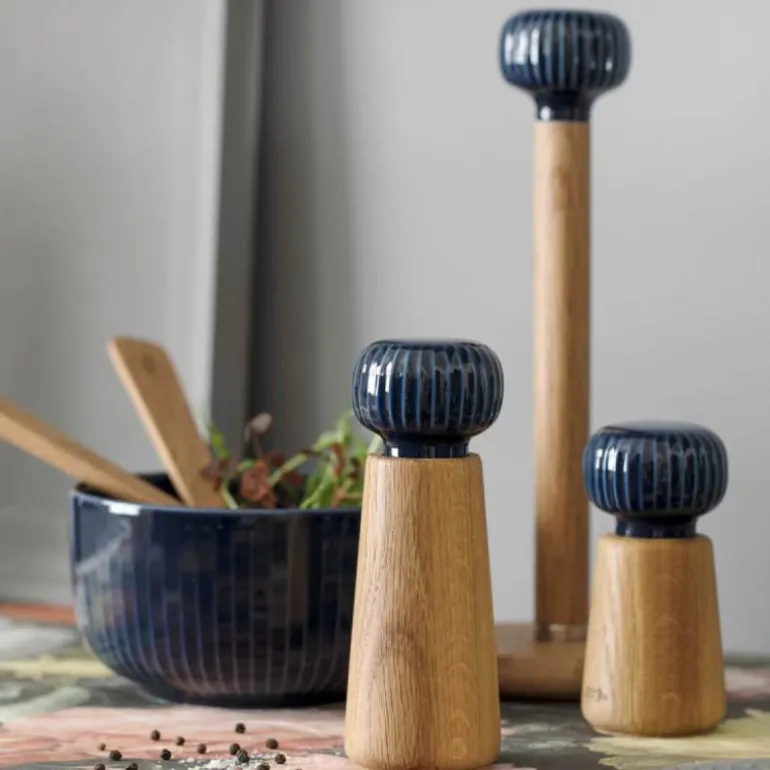 Krydderkvern i fargen indigo fra Kähler. Krydder og gastronomiske opplevelser hører tett sammen, og med Hammershøis klassiske kverner kan du pynte på ethvert bord og samtidig ha et effektivt hverdagssett på kjøkkenet ditt. Denne nye og elegante indigoblå nyansen tilfører et tidløst og eksklusivt preg til serviset.
