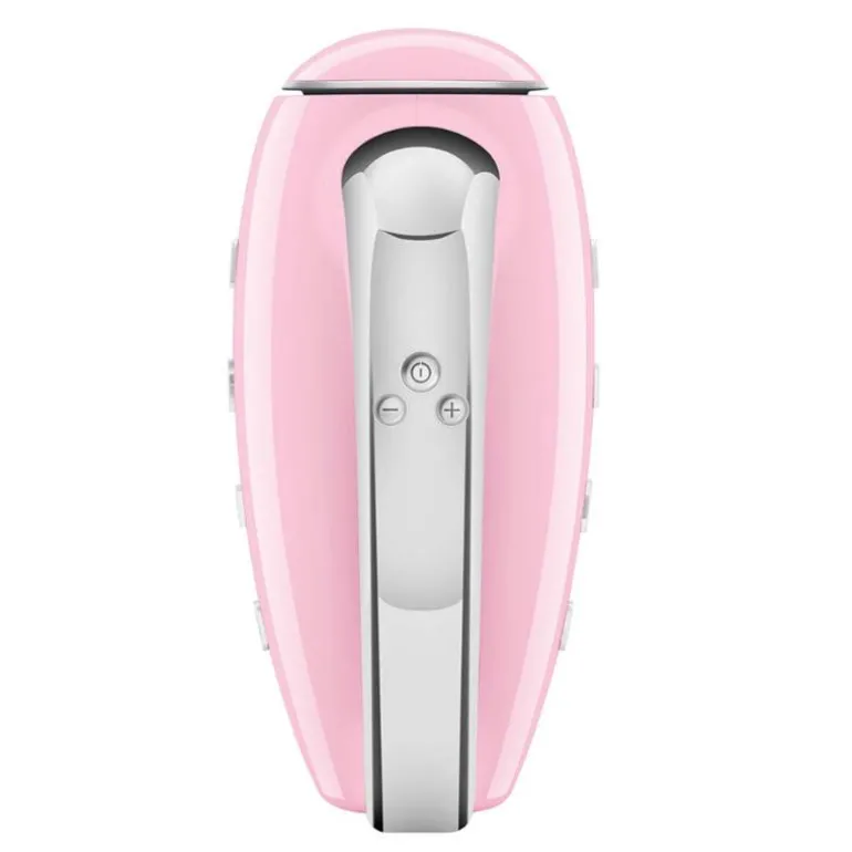 SMEG håndmikser (HMF01) er en elegant kjøkkenassistent i 50-tallsdesign. Med sitt rosa retrodesign er den like stilfull som den er funksjonell.