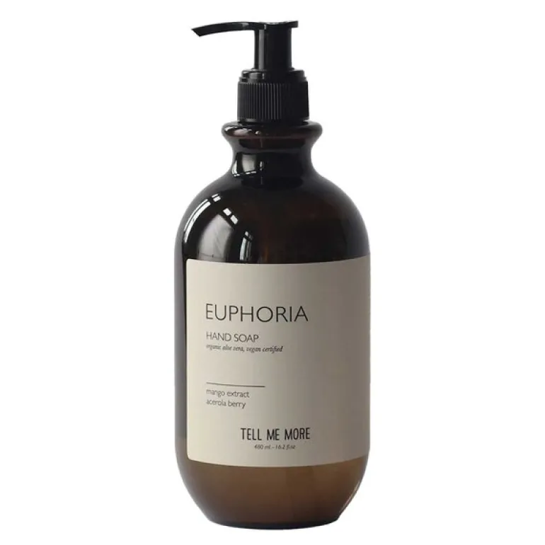 Håndsåpe 480 ml euphoria fra Tell Me More har en varm krydret duft med innslag av mango og acerola, som gir en behagelig og eksotisk følelse.