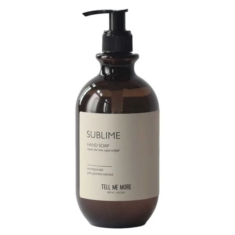 Håndsåpe 480 ml sublime fra Tell Me More har en forfriskende duft av rosa pomelo og granateple, der sitrus og blomstertoner smelter sammen for å skape en oppkvikkende og behagelig opplevelse.
