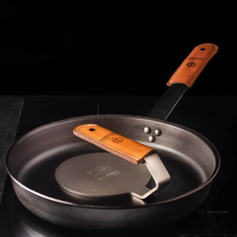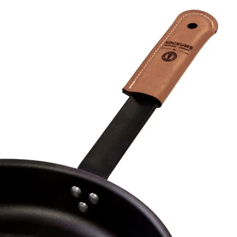 En lekker håndtaksbeskyttelse i skinn fra Kockums, designet for Kockums karbonstålstekepanner og kasserollen på 2,3 liter. Beskytt hendene dine med denne stilige håndtaksbeskyttelsen når stekepannen brukes over åpen ild. Den legges enkelt over håndtaket og gir et mer komfortabelt, stabilt og godt grep om pannen.