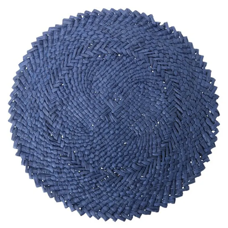 Lexingtons håndvevde bordbrikke, i en rund form på Ø38 cm, gir borddekkingen et særpreget og stilfullt uttrykk. Den dype blåfargen og det håndlagde designet skaper en personlig atmosfære, perfekt for både hverdagslige og spesielle anledninger.
