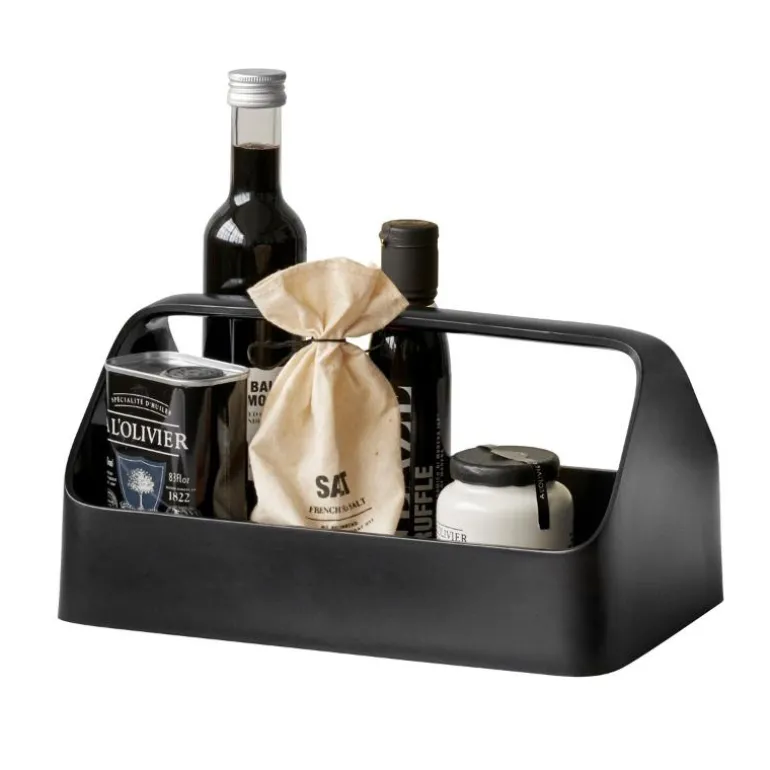 HANDY-BOX fra danske RIG-TIG gir deg en både stilren og funksjonell oppbevaringsboks som passer inn i alle hjemmets rom. Den kan for eksempel brukes til å oppbevare og organisere alt fra oljer og krydder på kjøkkenet til flasker og sminkeprodukter på badet. Bunnen til oppbevaringsboksen har en avtakbar, sklisikker matte som gjør at innholdet holder seg på plass når du flytter HANDY-BOX fra ett sted til et annet.
