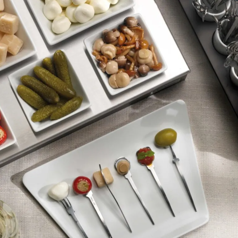 Dette settet med 40 små skjeer fra Pintinox Happy Hour-serien er laget i lett, rustfri stålplate og passer perfekt til fingermat og små porsjoner. Med en lengde på 10 cm er de ideelle for festservering og kan brukes igjen og igjen.