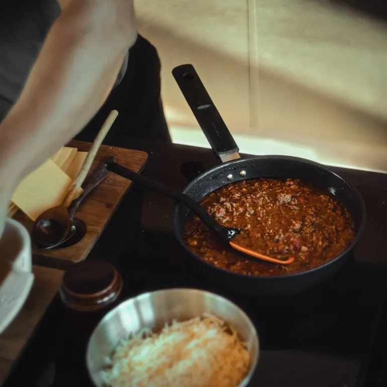 Energibunnen sparer tid og energi, med opptil 50 % raskere oppvarming på keramiske topper. Det varmebestandige glasslokket har smarte tømmefunksjoner for enkel håndtering. Pannen tåler temperaturer opp til 270 °C, og kan brukes i ovnen opptil 150 °C. Produsert i Finland, er dette en panne som kombinerer bærekraft, funksjonalitet og holdbarhet i én løsning.