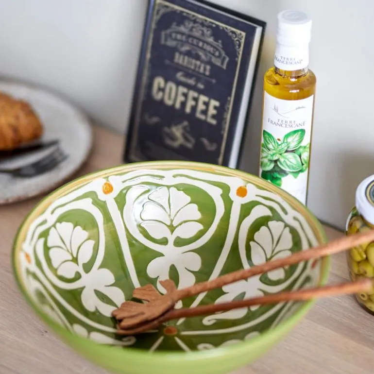Heikki skål 26,5 cm grønn fra Bloomingville er en vakker bolle med et håndmalt mønster i lyse og grønne nyanser. Det fine håndverket gjør bollen unik og gir en koselig og rustikk følelse til borddekkingen. Hver tallerken vil være unik da hvert penselstrøk gir et personlig preg og skaper en variasjon i designet.