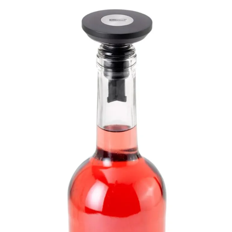 Flat utforming som gjør den ideell for oppbevaring i kjøleskapsdøren. Fungerer som en helletut med praktisk dryppfanger, og i tillegg er den en vinstopper som gjør flasken lufttett. Laget i 18/8 stål, silikon og PP plast. Den er 5 cm i diameter og 6 cm lang. Rengjøres best ved å spyle i varmt vann.
