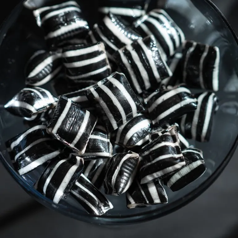 Herlige Fristelser B&W drops fra Cemo. Opplev vår stripete lakrisglede. Hver bit gir deg en herlig blanding av den gode, karakteristiske smaken av lakris, sammen med en mild og søt kontrast fra den hvite drasjeringen.