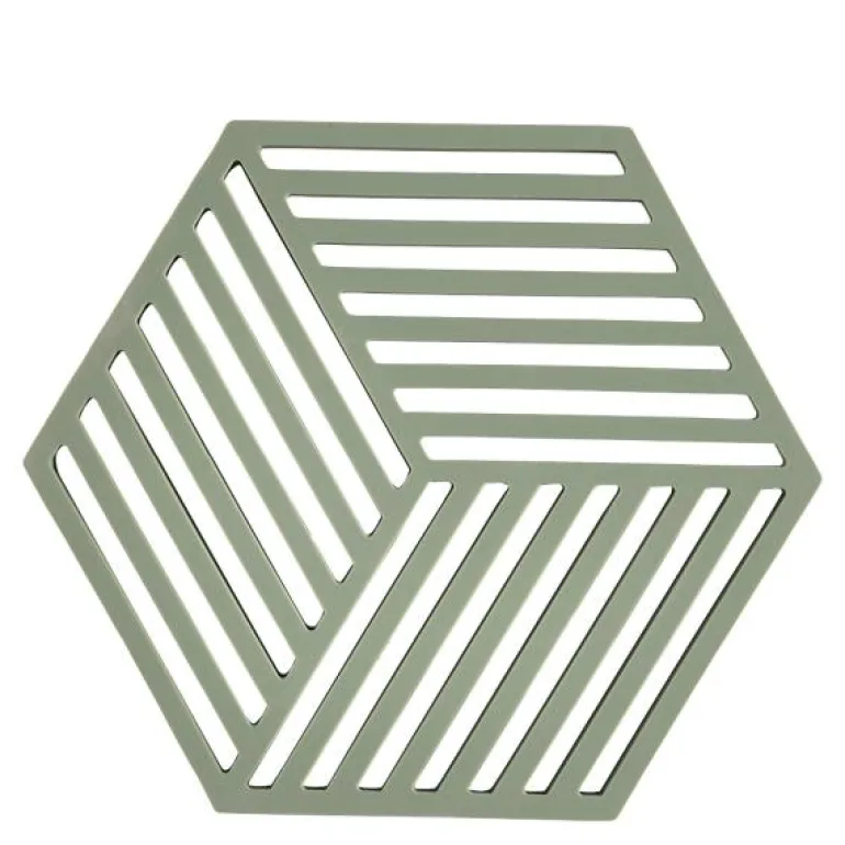Hexagon bordskåner 16 cm rosemary, fra Zone. Hexagon bordskånere i silikon er så grafisk dekorative at man blir fristet til å legge ut mange av dem i hele bordets lengde – uten å sette noe på dem. De tåler opptil 250 °C, og de kan vaskes i oppvaskmaskin. 16 x 14 x 0,9 cm.