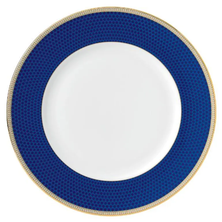 Hibiscus Plate 27cm/10.7in Blue. Inspirert av et Wedgwood-arkivmønster som dateres tilbake til rundt 1810, er Hibiscus en sofistikert kolleksjon med tidløse, klassiske elementer og rikt utsmykket med gull. Dette stilige mønsteret har et slående design av orientalske blå nyanser og overdådige botaniske detaljer, og med 22 karat gull påført for hånd for en elegant og overdådig finish. Perfekt til formelle middager, men kan også bruke som et stilfult alternativ til hverdags. Er flott i kombinasjon med hvitt.
