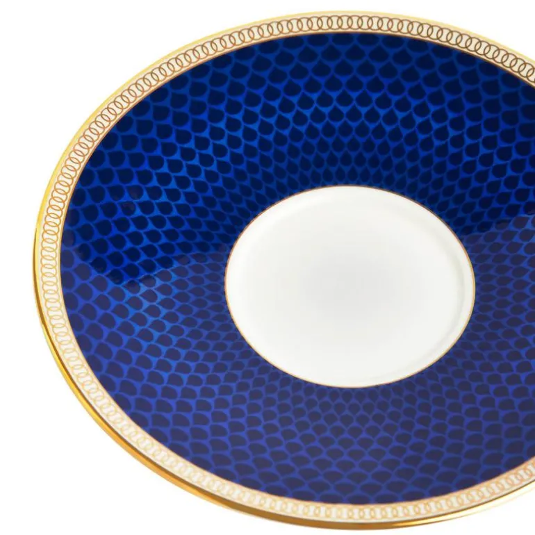 Hibiscus tekopp med fat i eske. Inspirert av et Wedgwood-arkivmønster som dateres tilbake til rundt 1810, er Hibiscus en sofistikert kolleksjon med tidløse, klassiske elementer og rikt utsmykket med gull. Dette stilige mønsteret har et slående design av orientalske blå nyanser og overdådige botaniske detaljer, og med 22 karat gull påført for hånd for en elegant og overdådig finish. Perfekt til formelle middager, men kan også bruke som et stilfult alternativ til hverdags. Er flott i kombinasjon med hvitt.