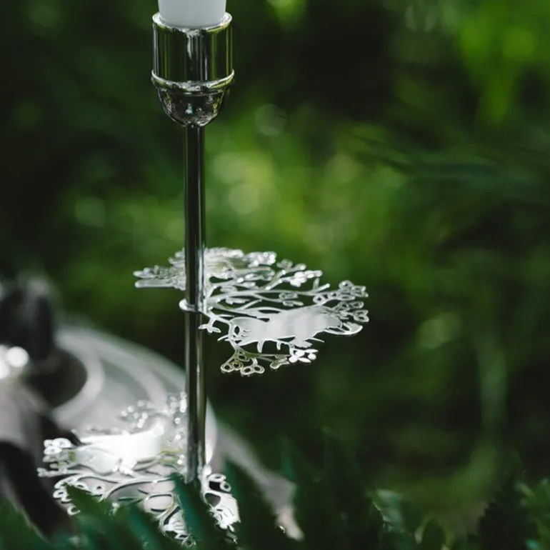 Laget av forniklet messing, utstråler lysestaken en tidløs eleganse og luksus, forsterket av Hilkes unike messingkode. Dens gjennomførte design kombinerer både kunstnerisk uttrykk og håndverk av høy kvalitet. Karakterene fra Mummi-universet er subtilt skjult blant grenene, noe som gir lysestaken en ekstra dimensjon og en leken forbindelse til Mummiverdenen. Denne detaljen gjør at lysestaken blir mer enn bare et funksjonelt objekt; den blir et kunstverk som gjenspeiler sjarmen og historien til Tove Janssons magiske verden.
