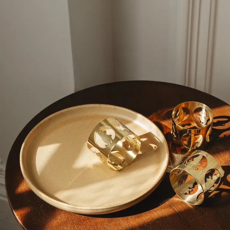 Opplev sjarmen i det eksklusive samarbeidet mellom Hilke Collection og Mummi med Hilke x Mummi serviettringer Mummipappa messing. Nyt luksusen med disse eksklusive, håndlagde serviettringene i massiv messing – et sett med 2 ringer, presentert vakkert i en fin gaveeske. Denne spesielle utgaven er laget for å feire Mummitrollets 80-årsjubileum og viser hvordan Hilke Collection og Mummitrollet deler viktige verdier som familie, vennskap, kjærlighet og toleranse. Disse unike serviettringene er et vakkert symbol på disse prinsippene.