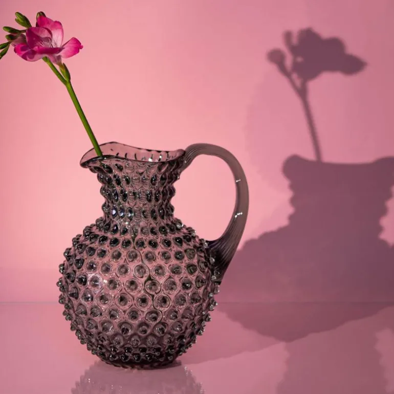 Enten brukt som en vase til blomstene dine eller som en vannmugge, vil denne muggen friske opp ethvert rom og bli en flott dekorasjon samt et vakkert og funksjonelt glassprodukt. Den har en estetisk kantede dekor som ble populær av Mr. Fenton i første halvdel av det 20. århundre. Den elegante avsmalnende håndtaket gir et komfortabelt grep på mugge, mens den håndformede isleppet hindrer vandrende isbiter, og den raffinerte åpningen tillater enkel rengjøring.