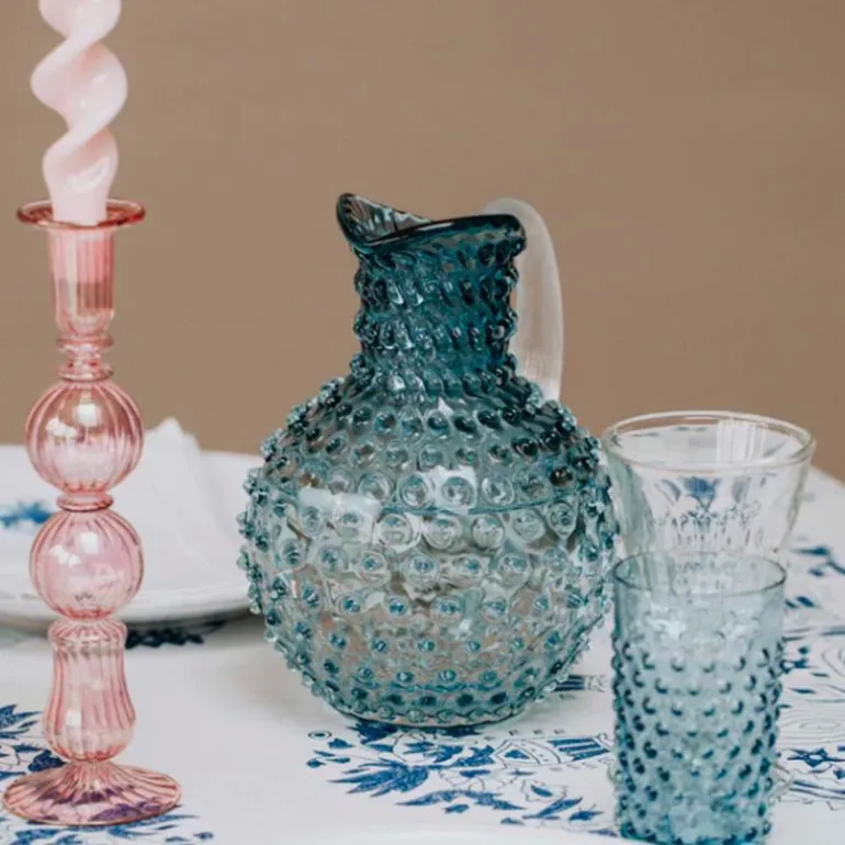 Enten det er vin eller limonade, passer denne karaffelen til enhver uformell sammenkomst innendørs eller utendørs med vår universalkanne i krystallglass. En moderne tilnærming til den bohemske glasstradisjonen kombinert med elegansen til krystallglasset, vil din Hobnail karaffel få interiøret ditt til å skinne. Karaffelen kan inneholde opptil 2 liter av drikken. Førsteklasses funksjoner som et avsmalnende håndtak gir deg et komfortabelt grep på karaffelen, mens isleppen holder tilbake isbiter. Alle Klimchi produktene er håndlagde i den lille byen Kamenický Šenov i Tsjekkia, som regnes som et mekka for glassproduksjon. Byen har blitt vugge for verdensberømt glassproduksjon og design gjennom århundrene. Bohemisk glass regnes som en kvalitetseiendom, et glasshåndverk som ikke finnes andre steder.Håndlaget glass kan inneholde bobler og nyanser kan variere litt avhengig av produksjonsprosessen, dette er et bevis på dets håndlagde natur.