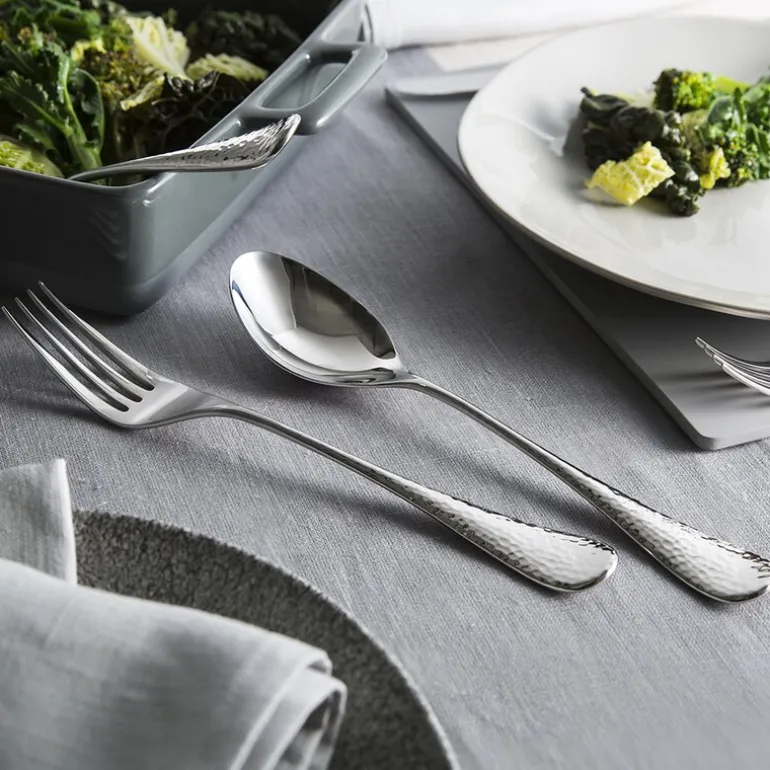 Honeybourne suppeskje fra Robert Welch kombinerer funksjonalitet med utsøkt design. Skjeen er laget av førsteklasses 18/10 rustfritt stål og har en speilpolert overflate som gir en luksuriøs glans ved bordet. Den karakteristiske, hamrede teksturen gir en spennende taktil opplevelse og reflekterer lyset på en elegant måte.