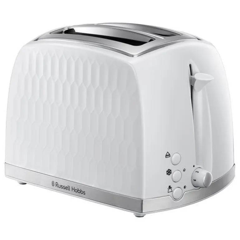 Med en unik teksturert design vil Honeycomb brødrister live opp ditt kjøkken. Med funksjoner som dekker dine behov kommer denne brødristeren med opptiningsfunksjon, avbrytningsfunksjon og oppvarmingsfunksjon, samt et oppvarmingsgitter. Med den justerbare stekekontrollen – 6 trinn kan du velge hvor lett eller hardt ristet brød du vil ha. Funksjon med høy løfting. For 2 skiver.